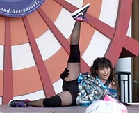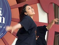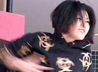 構成は面白いが、この作品のままでもっと凝れば良くなる。立ちの踊りもしっかりしていて、リズムも良くとれてた。技に入る時をもう少し考えよう。 |